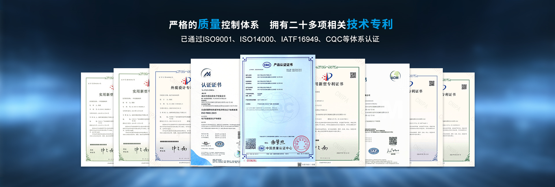 聯(lián)達(dá)優(yōu)公司已通過ISO9001、ISO14000、IATF16949等體系認(rèn)證,擁有二十多項(xiàng)相關(guān)技術(shù)專利,并在不斷擴(kuò)展更新中,我們可為客戶提供產(chǎn)品防水解決方案從原型設(shè)計(jì)到批量交付的全鏈路服務(wù),確保各類智能設(shè)備在復(fù)雜環(huán)境下更穩(wěn)定連接與信號(hào)傳輸更安全可靠。